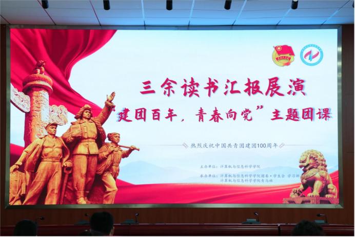 举办了第四届三余读书汇报展演暨“建团百年,青春向党”主题团课。院党委书记陈兰、团委书记钟华、辅导员傅帆、刘宇、郝占章、靳蜜静,第四届“三余读书”参与同学和班团代表,共上团课。