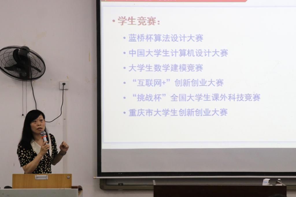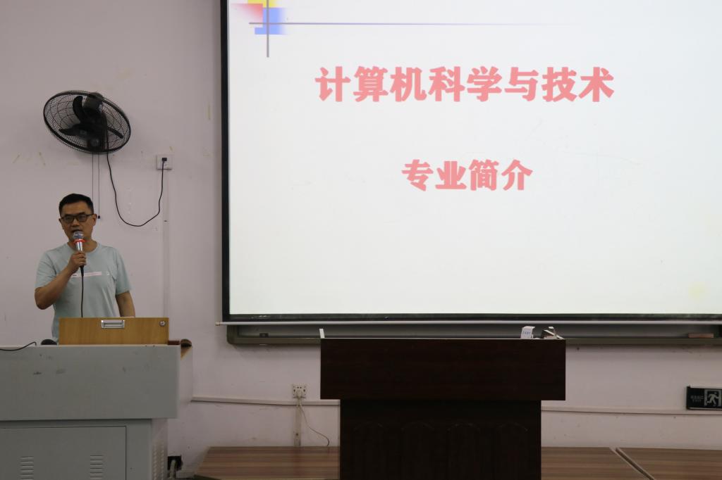首先,系主任陈勇老师从专业简介、专业优势、专业能力的培养定位等多个方面进行阐述,进一步帮助同学们了解计算机科学与技术专业的具体情况。同时他强调要注重基础,积极参加学科竞赛。随后,罗凌老师重点向同学们介绍学科竞赛与项目实践,展示了近年来计科系部分优秀科研与竞赛成果,鼓励同学们多多参与竞赛,真正做到以赛促学。接着訾玲玲老师介绍了虚拟现实与增强现实技术,通过往届学生的优秀作品向同学们展示了全息技术的魅力,同学们也不禁被展现出的虚拟场景所震撼。