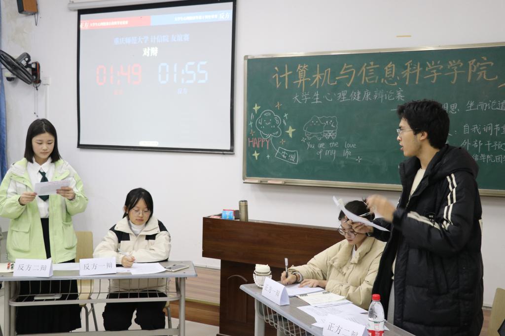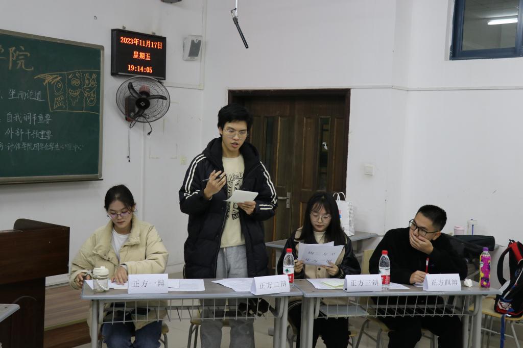 学生心理中心在励志楼2201举办首届大学生心理健康主题辩论赛。