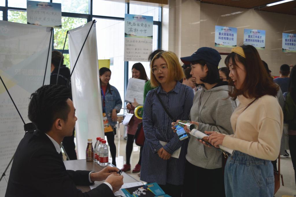 双选会上,招聘单位与求职毕业生就单位概况,人员需求,薪资待遇,发展方向,岗位发展潜力等岗位信息以及毕业生道德品质、专业素养、自主学习能力、上进心与主动性等能力素质达成初步了解。企业单位表示,扎实的专业基础、全面的综合素质、良好的道德品质是用人单位对求职者的高要求。对于师范类毕业生和非师范类的毕业生,在职场上,企业单位都只需要有实际工作能力的人。毕业生们表示,在求职过程中更加看重自身未来职业发展与单位需求的结合,而不是一味追求“高大上”的岗位。双选会现场还可以看到提前感受双选会气氛的非毕业生的身影,他们在为将来的求职预热,提前了解用人单位需求,以便为自己的职业生涯做出更好的规划。