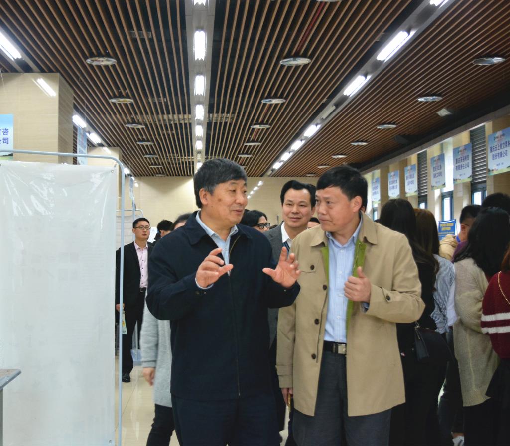 党委书记曾礼、校长周泽扬、党委副书记龚燕,在招就处副处长杨云及计信学院陈兰书记和魏延院长等活动负责人的陪同下,参观了招聘现场。校领导与个别企业代表交谈,并祝愿他们,招聘取得满意成果。
