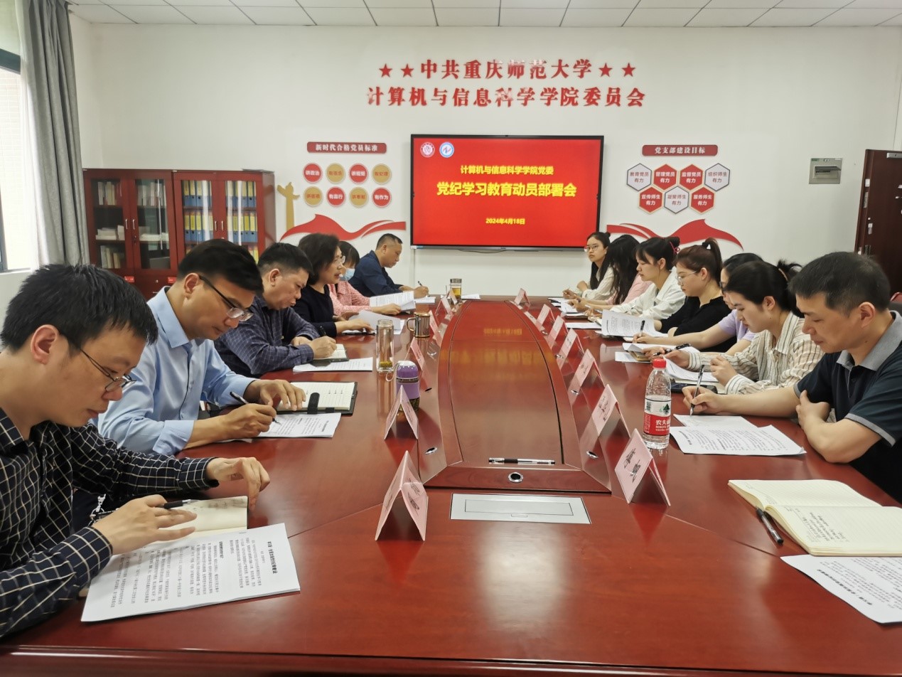 4月18日,学院党委在314会议室召开党纪学习教育专题动员部署会。会议深入学习贯彻习近平总书记关于党纪学习教育的重要讲话和重要指示精神,传达学习党中央、市委和学校有关会议精神,对全院开展党纪学习教育进行动员部署。学院领导班子成员、党委委员、纪委委员、支部书记、组织员、党员代表参加,会议由党委书记陈兰主持。