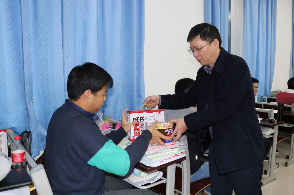 学子加油,鼓励他们为自己改变命运、搏取未来而竭力前行。其后,院领导及老师为备考学生分发学院精心准备的慰问礼品。