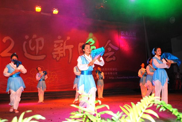 看,场上男男女女用那轻盈而娴熟的节奏,动感而激情的舞姿正在演绎着恰恰《Hole in my heart》,紧随其后的歌曲串烧《如果爱》和教师节目《格桑花》将晚会气氛推到高潮。扣人心弦的魔术《预言》,充满异域风情的《新疆舞》和古典舞《梦醉潇湘》,耐人深省的情景剧《丁香花》、《历史的天空》无一不感染在场的每一位观众,牵动着每一颗观众的心。嘻哈街舞串烧《舞客联盟》,霸气逼人rap《平民百万歌星》,优雅清新乐器合奏曲《burning》展示了年轻一代青春的曼妙多彩和无限热情,第四届团总支学生会的一场《时空之秀》更是呈现了集体创作的精美,形式新颖、妙趣横生、令人称绝。更有趣的是融合了小品和《江南style》的《计信好声音》令广大师生捧腹大笑,台下掌声阵阵,欢呼声一浪高过一浪。值得一提的是,晚会还特别设置了与观众游戏互动和微博互动的环节,同学们积极参与,充分体现了浪live