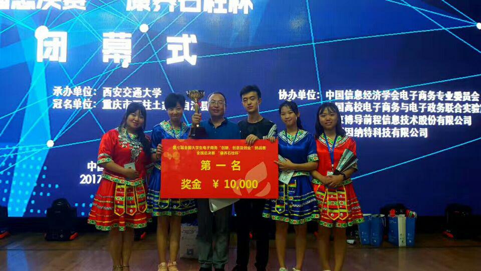 2017年7月20日至22日,由教育部主管、教育部高等学校电子商务类专业教学指导委员会主办的第七届全国大学生电子商务“创新、创意及创业”挑战赛(下称“三创赛”)全国总决赛在西安交通大学隆重举办。我校2支来自计信学院的本科生和研究生队伍参加。其中来自研究生队同学王涛、吴玉华、黎永越的“小骑士”团队获得一等奖;来自电子商务专业14级同学杨钰平、高玲及15级同学林巧、刘浩的“印象石柱”团队斩获特等奖第一名桂冠并登上央视电视台CCTV-13新闻荧屏,为学校争得荣誉。