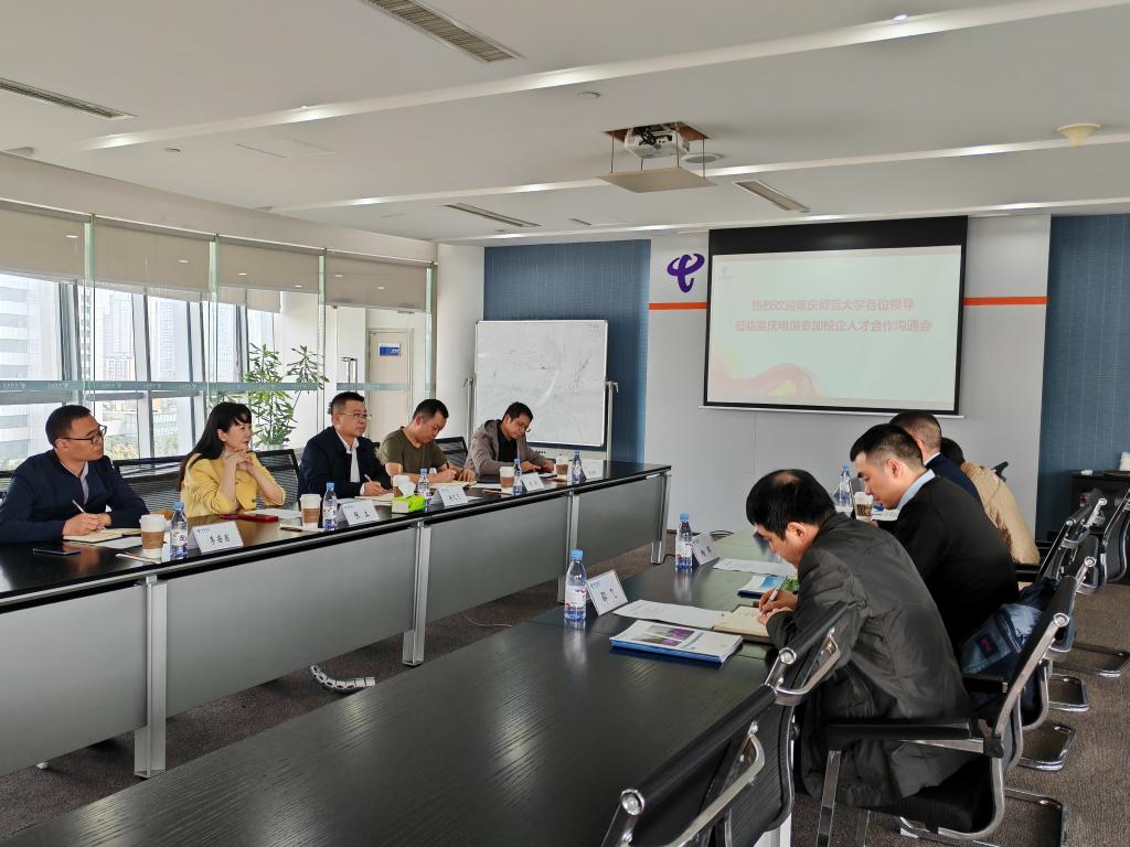 在对接会上,我校招生就业处处长冉久飞介绍了我校的办学情况、专业特色、毕业生的基本状况,并诚邀中国电信重庆公司赴我校选拔优秀毕业生。中国电信重庆公司人力资源部总经理陈松对一行人员来访表示热烈欢迎,并介绍了中国电信重庆公司基本情况。